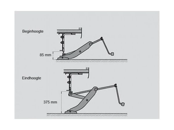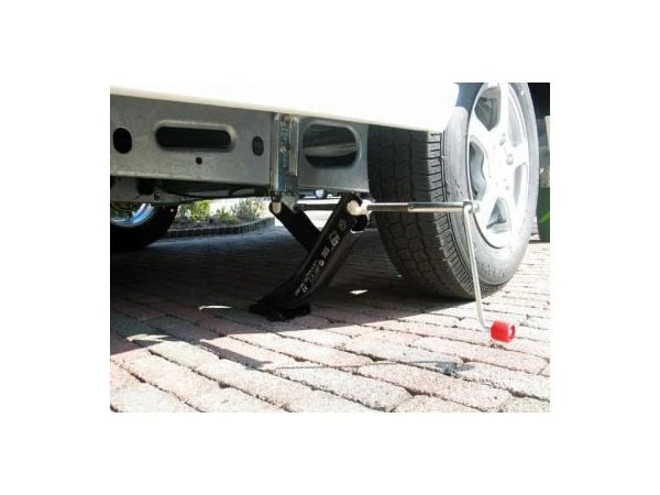 Grâce au système d’attelage spécial, le cric ne peut pas bouger (laissez le véhicule tracteur attelé). Les supports de cric spéciaux renforcent le châssis et soutiennent également le plancher de la caravane.