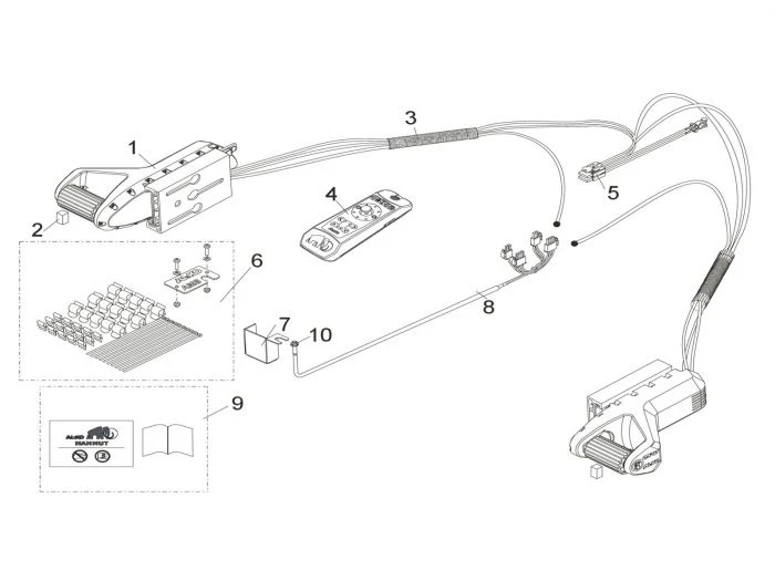 | Livré avec | Partie A du moteur et partie B du moteur, Barre de liaison, Câbles + gaines de protection, Plaques de montage en aluminium, Télécommande, Fusible, Clé d'urgence, Entretoises en aluminium, Mode d'emploi, Interrupteur reed |