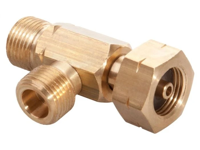 Le té d’accouplement pour bouteille de gaz Badé dispose d’un raccord universel à filetage interne gauche 1/2 » et de deux raccords à filetage externe gauche 1/2 ».