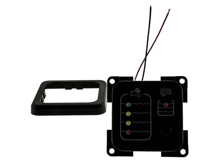 Le tableau de commande 12 volts inclus, indique le niveau du réservoir d’eau propre et indique lorsque le réservoir d’eau usée est plein. Les sondes en acier inoxydable de l’indicateur de niveau peuvent être raccourcies et conviennent à presque tous les réservoirs d’eau. Les capteurs du réservoir d’eau usée sont faciles à installer.