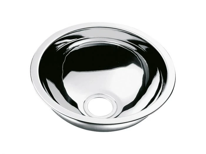 Le lavabo rond Can est en acier inoxydable. Le lavabo a une profondeur de 15 cm et peut être intégré dans un bateau, un camping-car ou une caravane.