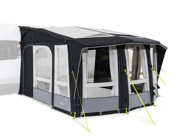 La série Ace Air de Dometic se caractérise par sa forme angulaire et très profonde. L’auvent a une profondeur de 265 cm sur les côtés et de 325 cm au milieu. Cela garantit que vous ne manquerez jamais de place avec l’Ace Air. L’armature de l’auvent entièrement gonflable rend le montage très simple. Faites glisser l’auvent dans le rail de votre camping-car ou caravane, connectez la pompe manuelle fournie et gonflez !