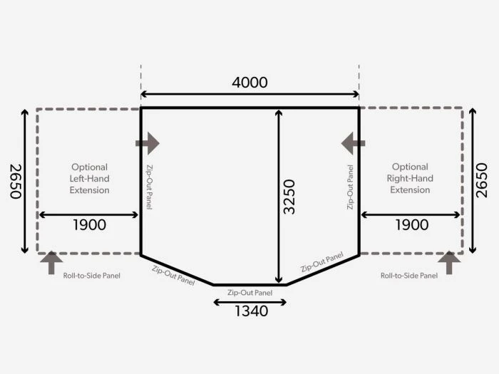 L’auvent a une largeur de 400 cm. Cela signifie que la caravane doit avoir un rail droit d’au moins 400 cm afin de pouvoir monter l’auvent. Vous souhaitez glisser l’auvent dans le rail de votre store ? Dans ce cas, l’auvent doit avoir une longueur minimale de 400 cm.