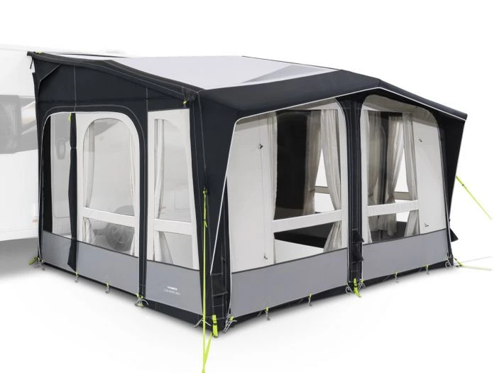 La série Club Air de Dometic se caractérise par son aspect classique. L’auvent ressemble à un auvent traditionnel, mais les apparences peuvent être trompeuses. L’armature de l’auvent entièrement gonflable rend le montage très simple. Faites glisser l’auvent dans le rail de votre camping-car ou caravane, connectez la pompe manuelle fournie et gonflez ! Avec une profondeur de 275 cm, vous avez beaucoup de place dans le Club Air !