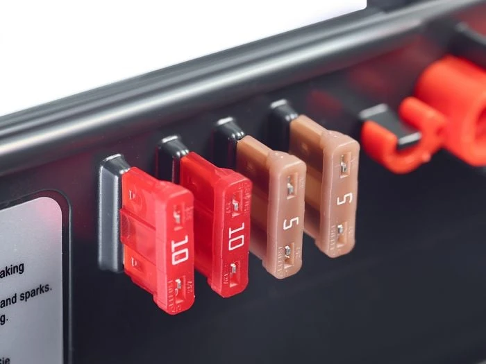 Le SMP301-07 assure que vos batteries sont toujours bien chargées. Le chargeur de batterie intégré est adapté à toutes les batteries au plomb d’une capacité de 50 à 300 ampères. L’alimentation commutable est équipée de voyants LED, qui vous informent sur l’état de charge actuel.