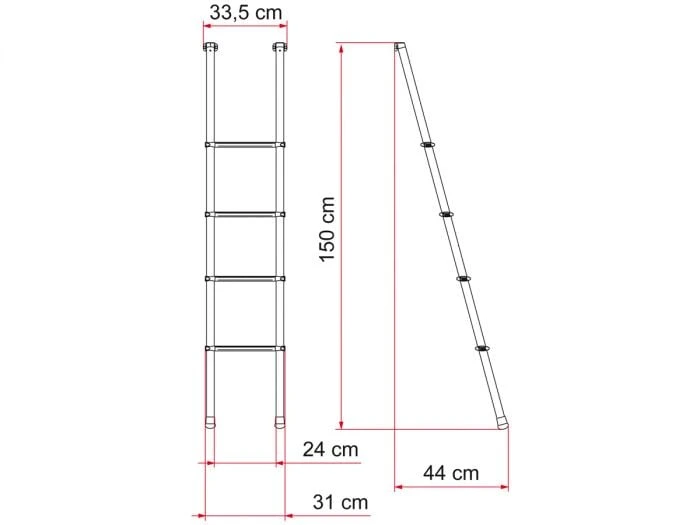 Dimension interne 24 cm de large, dimension externe 31 cm. Equipée avec des crochets en nylon pour maintenir l’échelle dans la bonne position.