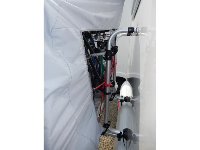 Cette housse tridimensionnelle protège vos vélos et le bas de votre porte-vélos. L’arrière est ouvert pour que les pinces à vélo puissent rester en place. La housse peut contenir jusqu’à 3 vélos.