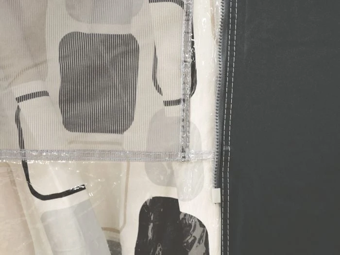 Vous recherchez un auvent saisonnier compact offrant un climat de vie agréable ? Alors l’Hypercamp Como 240 pourrait être l’auvent qu’il vous faut ! Grâce aux matériaux utilisés, cet auvent robuste peut être monté de mars à septembre. Le toit est fabriqué en toile de tente TenCate WM 19 revêtue, avec un imprimé décoratif à l’intérieur. Cet imprimé décoratif n’est pas seulement là pour la décoration, il absorbe également l’humidité de la condensation, ce qui assure un environnement de vie agréable. Les parois sont fabriquées en toile de tente respirante TenCate WR 18.