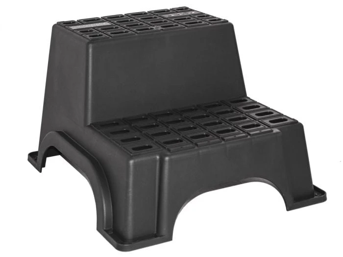 Le marche-pied double en matière synthétique est très solide et de couleur noire. Idéal pour caravane ou camping-car.