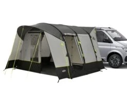 Cet auvent fourgon a un espace de vie de 300 x 320 centimètres, largement plus grand que beaucoup d’autres auvents fourgon. Lorsque le temps est mauvais, vous pouvez vous asseoir confortablement à l’intérieur sans vous retrouver les uns sur les autres.