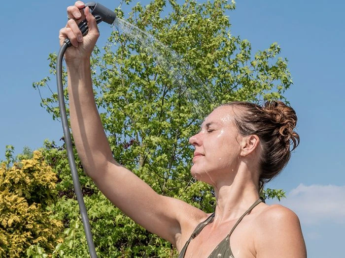 Après une chaude journée d’été, il n’y a rien de plus agréable que de prendre une bonne douche froide en plein air. Avec la douche camping ProPlus, cela est possible !